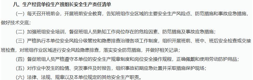 以班组长安全生产责任清单为例: