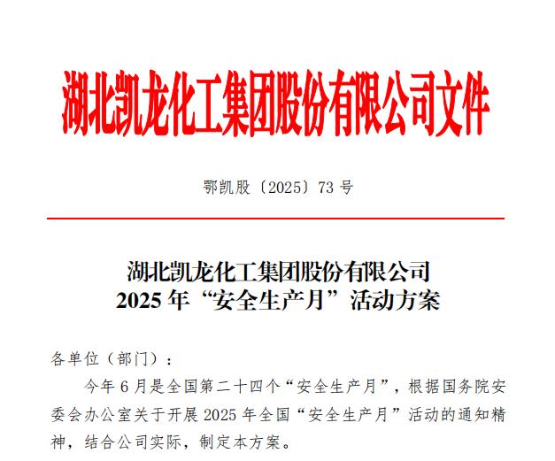 5月22日,凯龙股份下发了2025年“安全生产月”活动方案,提早部署“安全生产月”活动。