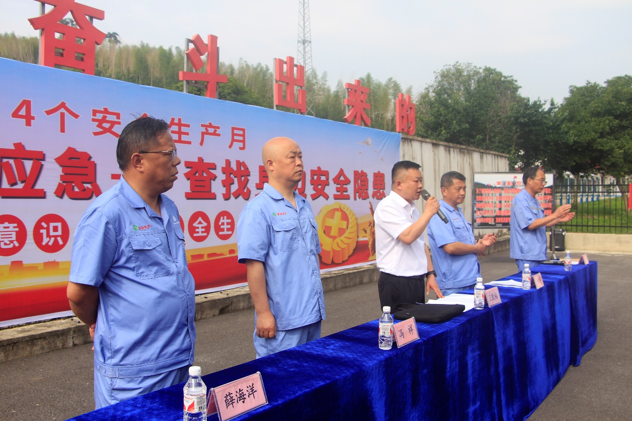 2025年6月3日上午8时,湖北帅力化工有限公司组织全体职工开展了以“人人讲安全、个个会应急——查找身边安全隐患”为主题的“安全生产月”活动启动仪式,江南化工副总裁王敦福出席本次活动。
