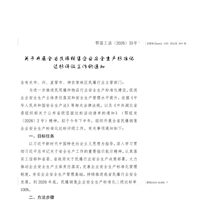 关于开展全省民爆销售企业安全生产标准化 达标评级工作的通知
