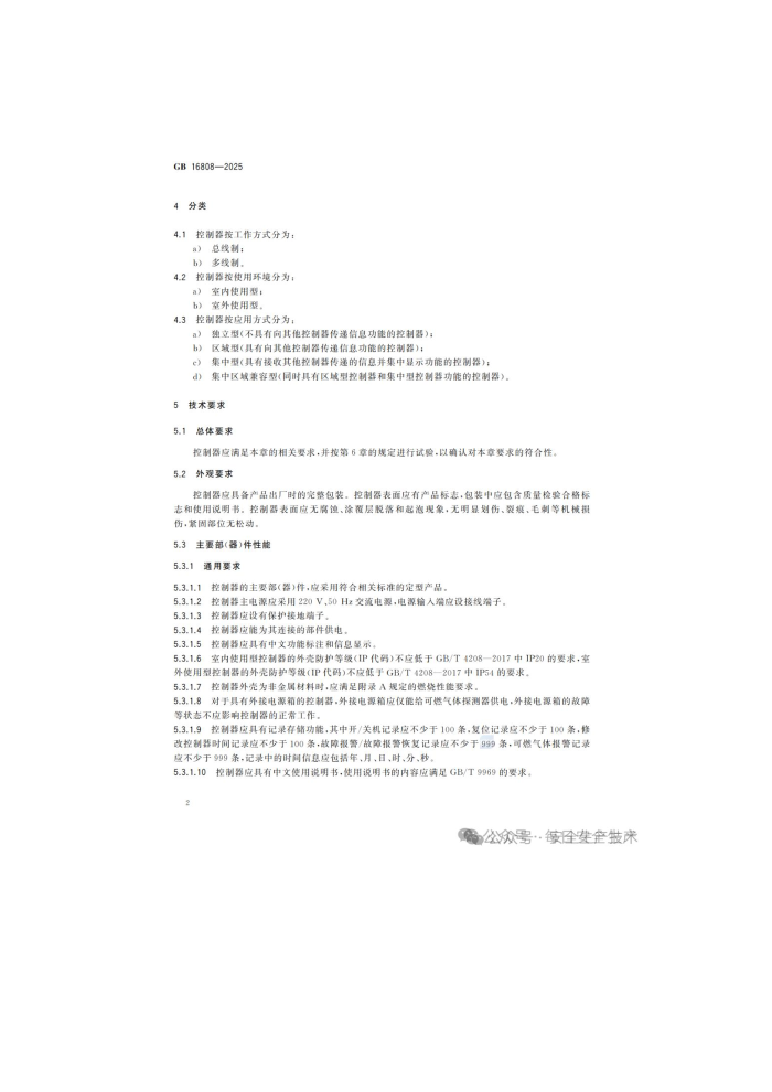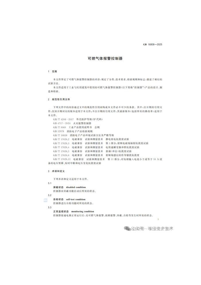 可燃气体报警控制器 GB16808--2025